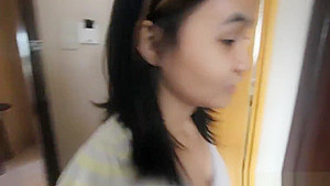 Asian teen 18+ amateur picked up and fucks in a messy hotel room